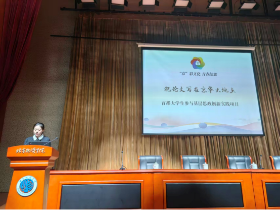 12月19日,“把论文写在京华大地上——首都大学生参与基层思政创新实践项目”总结交流会在我校崇德楼报告厅召开。会议由北京市思想政治工作研究会秘书长陈清主持,北京党校系统思想文化建设研究会会长周美雷、市委宣传部和市委教育工委相关处室领导等参加会议。会议对项目组师生颁发结项证书,各项目组分别就项目成果和心得体会进行了交流分享。